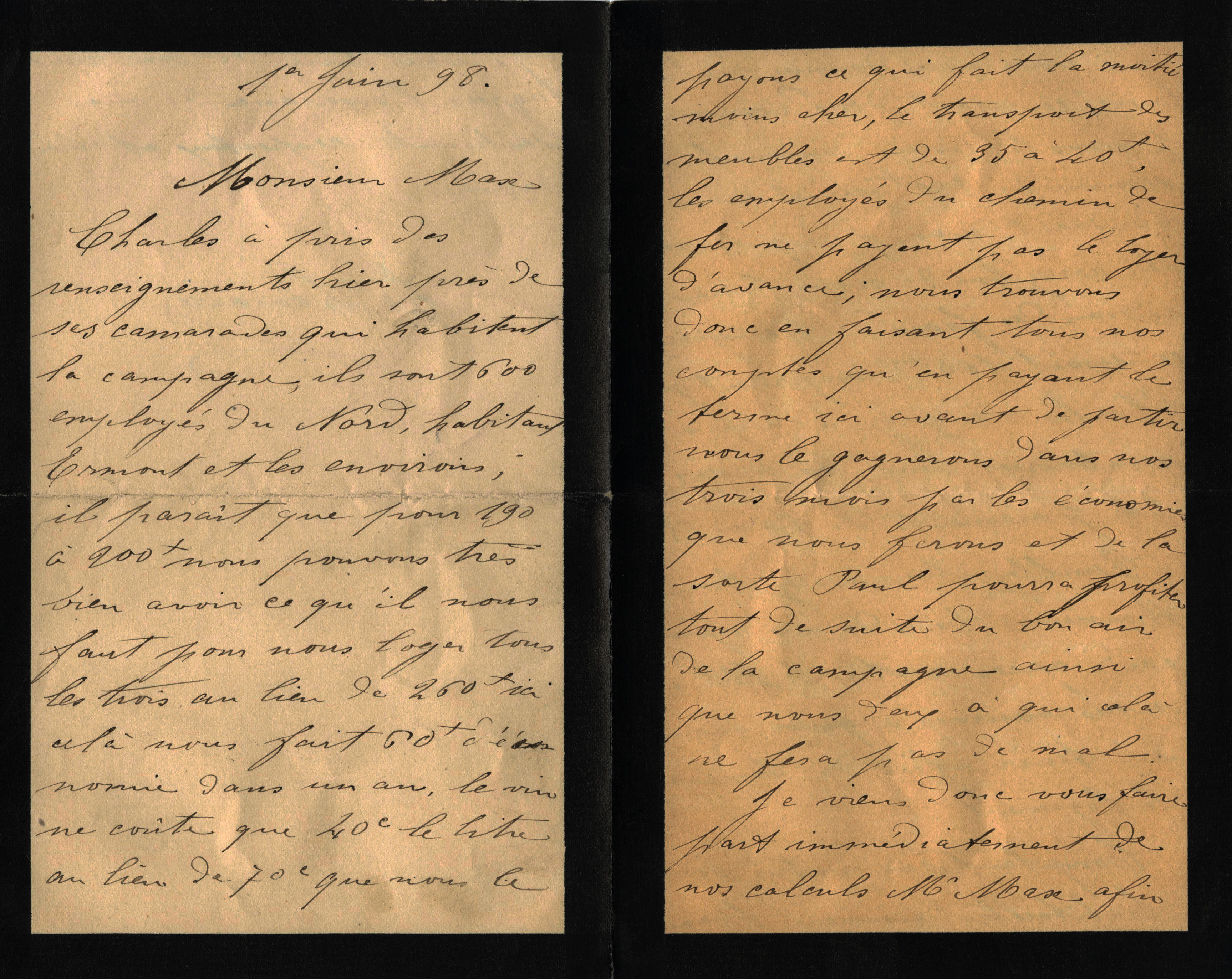 À défaut de pouvoir quitter Paris définitivement, certains tentent leur chance ailleurs sur les conseils de Max Lazard. Ce sont les réseaux familiaux et amicaux qui sont alors utiles. Louis Lemaire lui écrit le 1er juin 1898. Il cherche à quitter Paris avec Charles, son frère. Les camarades de Charles « qui habitent la campagne », lui ont indiqué qu’à Ermont (actuellement dans le Val-d’Oise), les Chemins de fer du Nord employaient 600 ouvriers et que le logement ne couterait que de 190 à 200 francs pour trois, au lieu de 260 francs à Paris. Il précise également que le coût de la vie y est moindre : « Le vin ne coûte que 40 centimes le litre au lieu de 70 centimes ». En prime, Paul, le troisième frère, malade, « pourra profiter de suite du bon air de la campagne ainsi que nous deux à qui cela ne fera pas de mal ». Le 7 juin, Louis écrit à nouveau à Max Lazard. Il est enchanté de sa visite près de Sannois : « Nous avons fini par découvrir un charmant petit logement sur la place de l’église. Nous avons signé tout de suite un bail d’un an. C’est au troisième étage. Nous avons deux grandes pièces, un cabinet, une grande cuisine et une petite entrée pour 190 francs par an payable par trimestre échu, ce qui fait 45 francs 50 par terme au lieu de 65 que nous payions ici. Le logement est libre et entièrement propre. Des fenêtres on ne voit que les champs et les bois au bout de notre rue à 3 minutes. […] Paul sera au milieu des champs ».